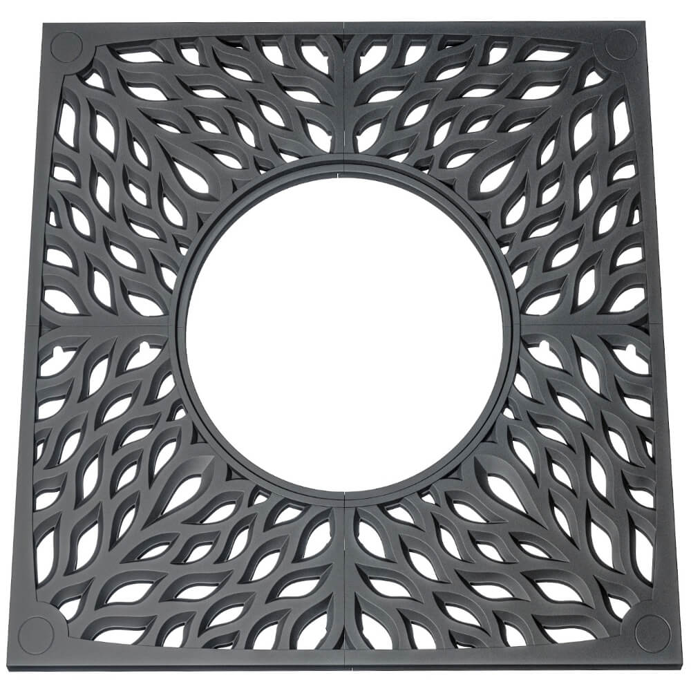 Прикорневая решётка Crust Черная 2х2м для городского благоустройства в Рязани. Состоит из 4-х отдельных элементов в форме кроны дерева, в углах элементов предусмотрены места для прожекторов, секции между собой стягиваются болтами. Скрытая стыковка секций является особенностью данной модели и создаёт целостный вид. Решетка укладывается на почву вокруг деревьев, чтобы обеспечить благоприятные условия для их произрастания. Использование приствольных решёток является важным моментом при благоустройстве городских улиц, парков и скверов. Они способствуют сохранению естественной рыхлости почвы, защите корневой системы растений и свободному проникновению влаги, воздуха и солнечных лучей.