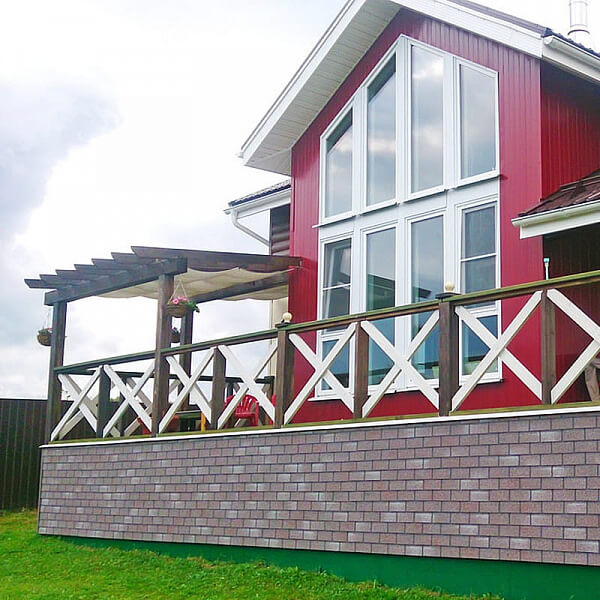 Плитка гибкая битумная для фасада Технониколь Хауберг коллекция Кирпич цвет Мраморный размеры 1000х250х3мм (в упаковке 20 штук общей площадью 2 м2).