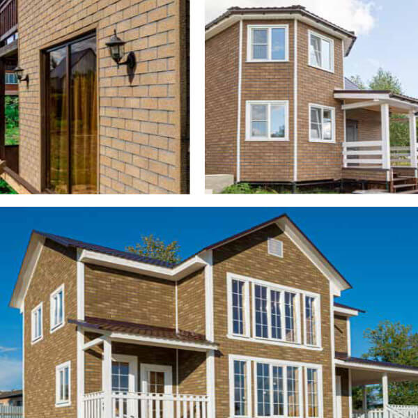 Контрастная природная расцветка сочетает в себе элегантность с практичностью и подходит для обрамления дверей и окон, оформления колонн и углов дома.