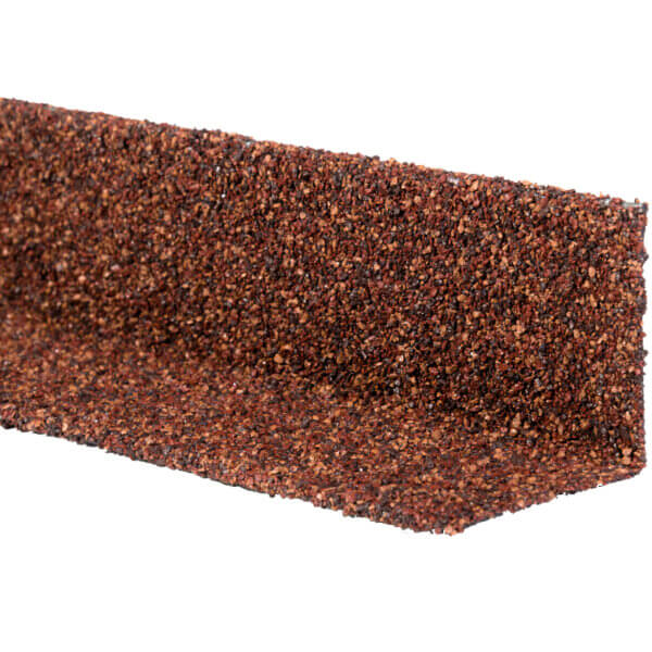 Внутренний уголок изготовлен из высокопрочного стального листа толщиной 0,45 мм. С обоих сторон изделие покрыто алюмоцинковым сплавом. Покрытие внешней стороны – базальтовый гранулят. Уголок не подвержен коррозии и не будет окисляться даже в месте среза при монтаже, а также в случае появления царапин на слое.