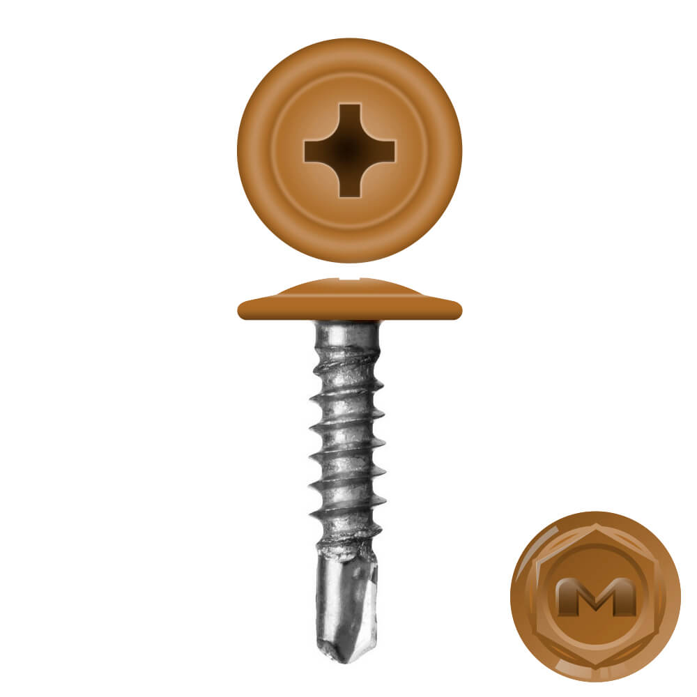 Caморез ПШС по металлу 4,2х16 RAL8001 Орех (Кедр темный) прессшайба сверло в Рязани