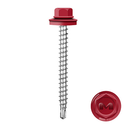 Кровельные саморезы Daxmer (Даксмер) по дереву цветом RAL3003 Рубин 4,8*50мм окрашиваются УФ-стойкой полиэфирной порошковой краской. Цинковое антикоррозийное покрытие обеспечивает длительный срок службы саморезов (не менее 25 лет). Специальная металлическая шайба с ЕРDМ - уплотнителем обеспечивает плотное прилегание профилированного металла (кровли) к деревянной обрешетке, а также препятствует попаданию влаги.