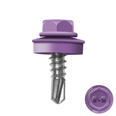 Кровельные саморезы Daxmer (Даксмер) по металлу цветом RAL4005 Сиреневый 5,5*19мм имеют частую резьбу, а специальная металлическая шайба с ЕРDМ-уплотнителем 2,8 мм обеспечивает плотное прилегание профилированного металла (кровли) к обрешетке, а также препятствует попаданию влаги. Также ЕРDМ-уплотнитель защищает от перепада температур (за счет высокого содержания каучука), который адаптируется под окружающую температуру и не позволяет кровле или забору «гулять», плотно прижимая листы к основанию.