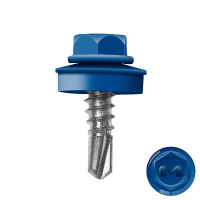 Кровельные саморезы Daxmer (Даксмер) по металлу цветом RAL5005 Синий Сигнал 5,5*19мм имеют частую резьбу, а специальная металлическая шайба с ЕРDМ-уплотнителем 2,8 мм обеспечивает плотное прилегание профилированного металла (кровли) к обрешетке, а также препятствует попаданию влаги. Также ЕРDМ-уплотнитель защищает от перепада температур (за счет высокого содержания каучука), который адаптируется под окружающую температуру и не позволяет кровле или забору «гулять», плотно прижимая листы к основанию.