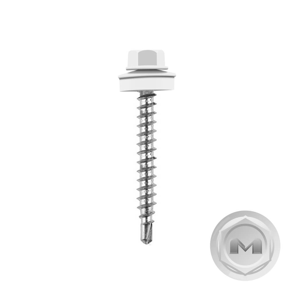 Кровельные саморезы Daxmer (Даксмер) по дереву цветом RAL9003 Белый 4,8*35мм окрашиваются УФ-стойкой полиэфирной порошковой краской. Цинковое антикоррозийное покрытие обеспечивает длительный срок службы саморезов (не менее 25 лет). Специальная металлическая шайба с ЕРDМ - уплотнителем обеспечивает плотное прилегание профилированного металла (кровли) к деревянной обрешетке, а также препятствует попаданию влаги.