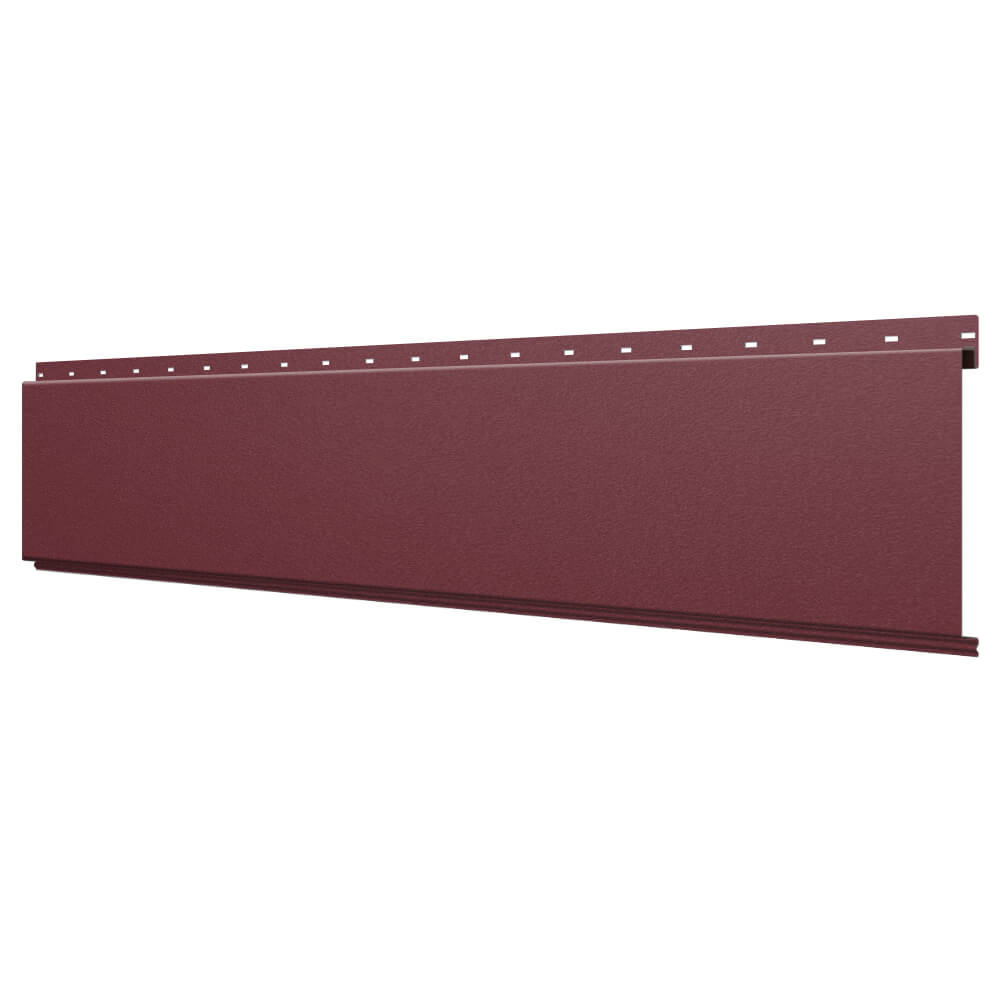 Линеарная потолочно-стеновая панель ГЛАДКАЯ цвет RAL3005 Красное Вино Стальной Бархат применяется в качестве софитов для подшивы крыши, наружной и внутренней отделки потолков, стен, фронтонов фасада дома в Рязани.