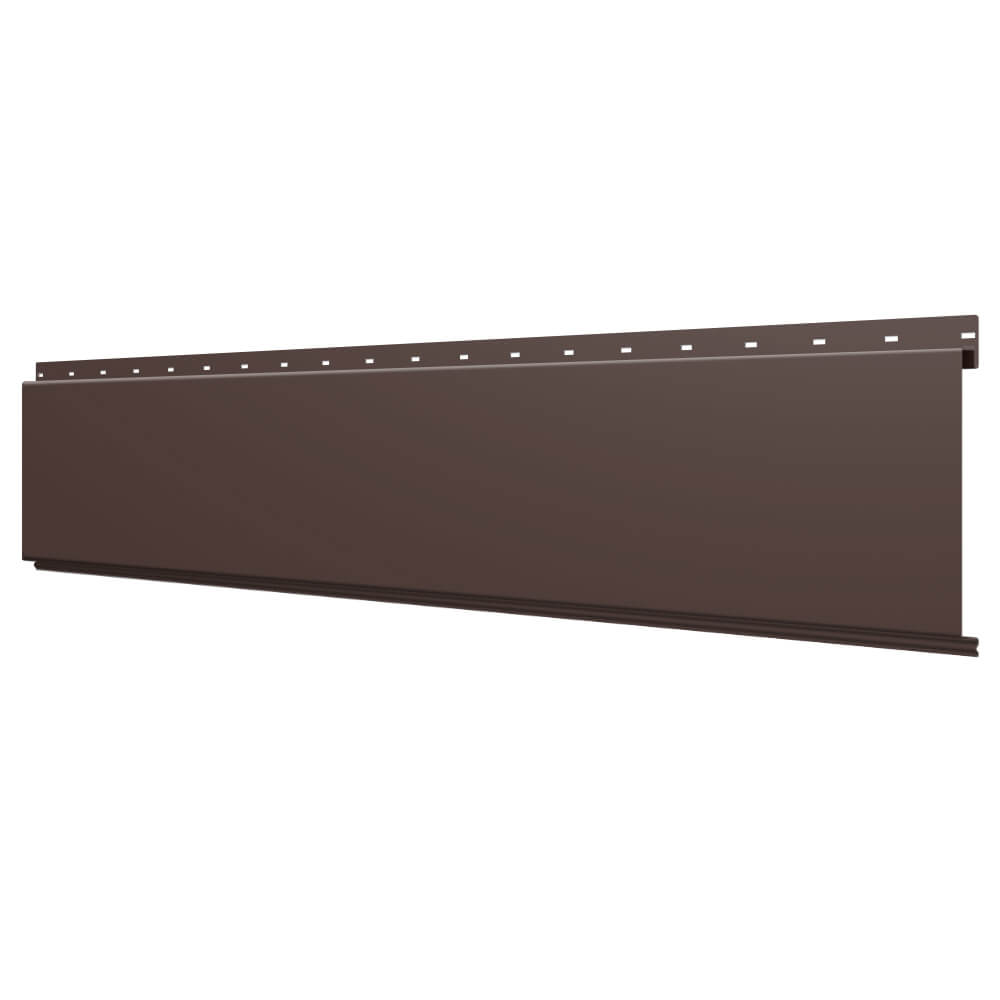 Линеарная потолочно-стеновая панель ГЛАДКАЯ цвет RAL8017 Шоколад применяется в качестве софитов для подшивы крыши, наружной и внутренней отделки потолков, стен, фронтонов фасада дома в Рязани.