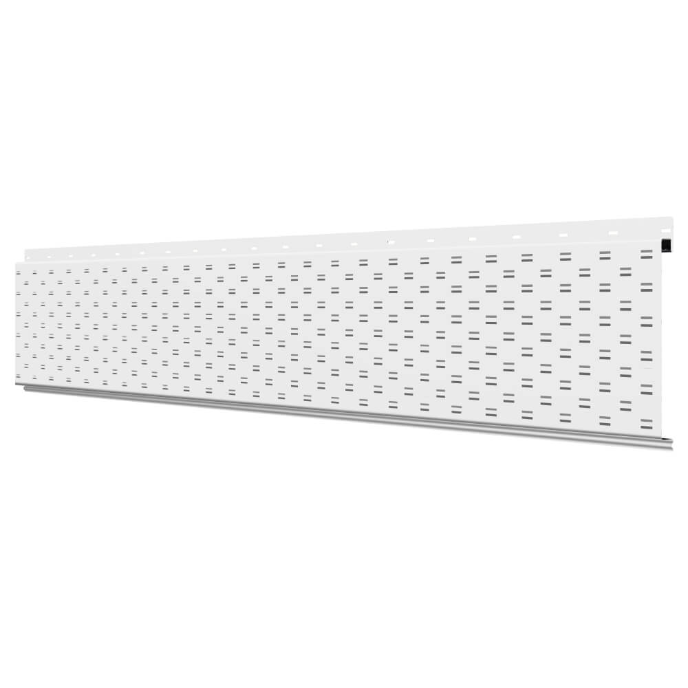 Линеарная потолочно-стеновая панель с ПЕРФОРАЦИЕЙ для вентиляции цвет RAL9003 Белый применяется в качестве софитов для подшивы крыши, наружной и внутренней отделки потолков, стен, фронтонов фасада дома в Рязани.