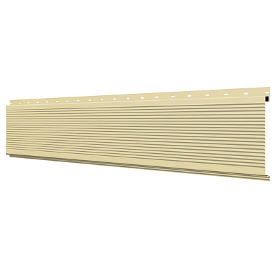 Линеарная потолочно-стеновая панель РИФЛЕНАЯ усиленная цвет RAL1014 Бежевый применяется в качестве софитов для подшивы крыши, наружной и внутренней отделки потолков, стен, фронтонов фасада дома в Рязани.