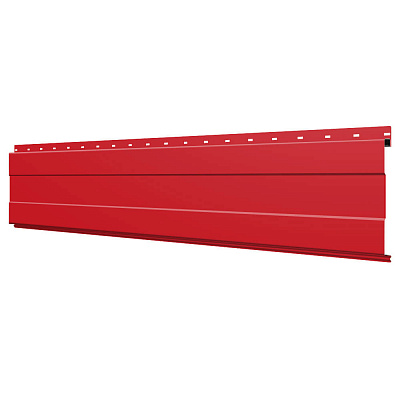Линеарная потолочно-стеновая панель с ПОЛОСОЙ усиленная цвет RAL3020 Красный применяется в качестве софитов для подшивы крыши, наружной и внутренней отделки потолков, стен, фронтонов фасада дома в Рязани.