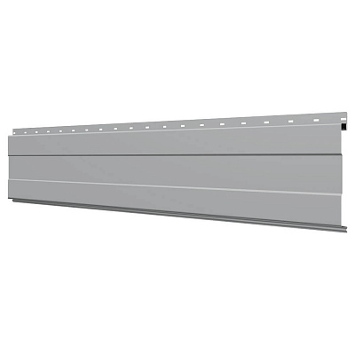 Линеарная потолочно-стеновая панель с ПОЛОСОЙ усиленная цвет RAL7004 Серый применяется в качестве софитов для подшивы крыши, наружной и внутренней отделки потолков, стен, фронтонов фасада дома в Рязани.
