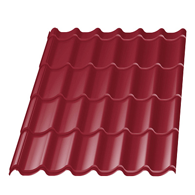 Металлическая черепица Меркурий цвет RAL 3003 Рубин имеет профиль внешне на кровле напоминающий классическую керамическую черепицу. Меркурий — это обновленный аналог профиля металлической черепицы для кровли крыши. Форма профиля имеет богатый внешний вид напоминающий небольшие набегающие волны. Лучшие показатели герметизации сделали профиль Меркурий гарантом стабильной и долговременной службы на крышах в Рязани. Данный профиль отличается не только своим качеством и практичностью, но и благородным внешним видом.