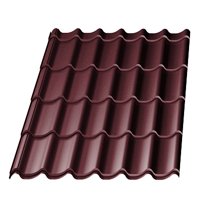 Металлическая черепица Меркурий цвет RAL 3005 Красное Вино Стальной Бархат имеет профиль внешне на кровле напоминающий классическую керамическую черепицу. Меркурий — это обновленный аналог профиля металлической черепицы для кровли крыши. Форма профиля имеет богатый внешний вид напоминающий небольшие набегающие волны. Лучшие показатели герметизации сделали профиль Меркурий гарантом стабильной и долговременной службы на крышах в Рязани. Данный профиль отличается не только своим качеством и практичностью, но и благородным внешним видом.