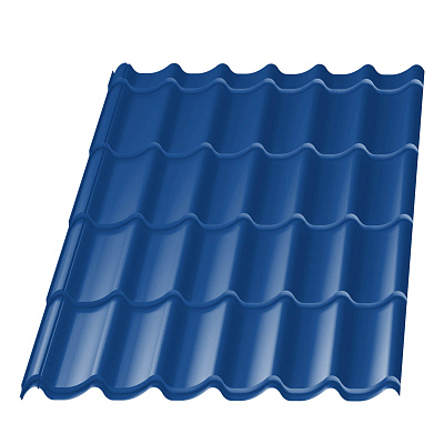Металлическая черепица Меркурий цвет RAL 5002 Синий Сигнал имеет профиль внешне на кровле напоминающий классическую керамическую черепицу. Меркурий — это обновленный аналог профиля металлической черепицы для кровли крыши. Форма профиля имеет богатый внешний вид напоминающий небольшие набегающие волны. Лучшие показатели герметизации сделали профиль Меркурий гарантом стабильной и долговременной службы на крышах в Рязани. Данный профиль отличается не только своим качеством и практичностью, но и благородным внешним видом.