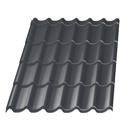 Металлическая черепица Меркурий цвет RAL 7024 Серый Графит имеет профиль внешне на кровле напоминающий классическую керамическую черепицу. Меркурий — это обновленный аналог профиля металлической черепицы для кровли крыши. Форма профиля имеет богатый внешний вид напоминающий небольшие набегающие волны. Лучшие показатели герметизации сделали профиль Меркурий гарантом стабильной и долговременной службы на крышах в Рязани. Данный профиль отличается не только своим качеством и практичностью, но и благородным внешним видом.