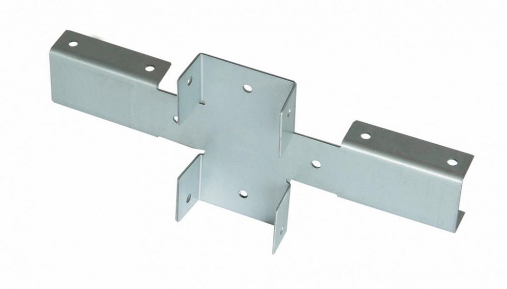 Х-Кронштейн для модульных заборов. Х-кронштейн выполнен из холоднокатаной стали. Размеры - 250×110×40 мм, вес - 250 г, толщина металла - 1,4 мм. Для крепления прожилин 40*20 мм к столбам на 55 мм