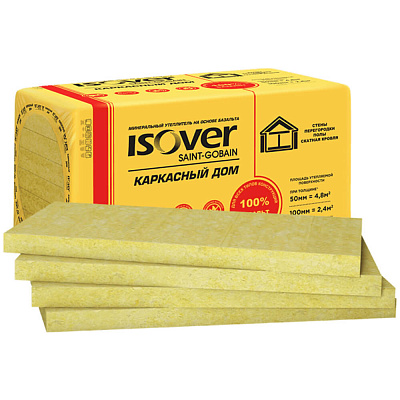 Утеплитель ISOVER Каркасный Дом — тепло- и звукоизоляционные плиты из минеральной ваты на основе каменного волокна. Производятся из природных компонентов вулканических пород базальтовой группы. Характеристики продукта обеспечивают универсальность в применении, простой и быстрый выбор.