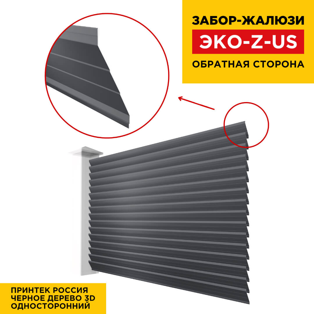 Ламель металлическая Z-образная усиленная ЭКО-Z-US, цвет Черное Дерево 3D Принтек Россия одностороннее покрытие, длина любая кратно 1см под заказ - для забора-жалюзи, беседки, перголы в Рязани