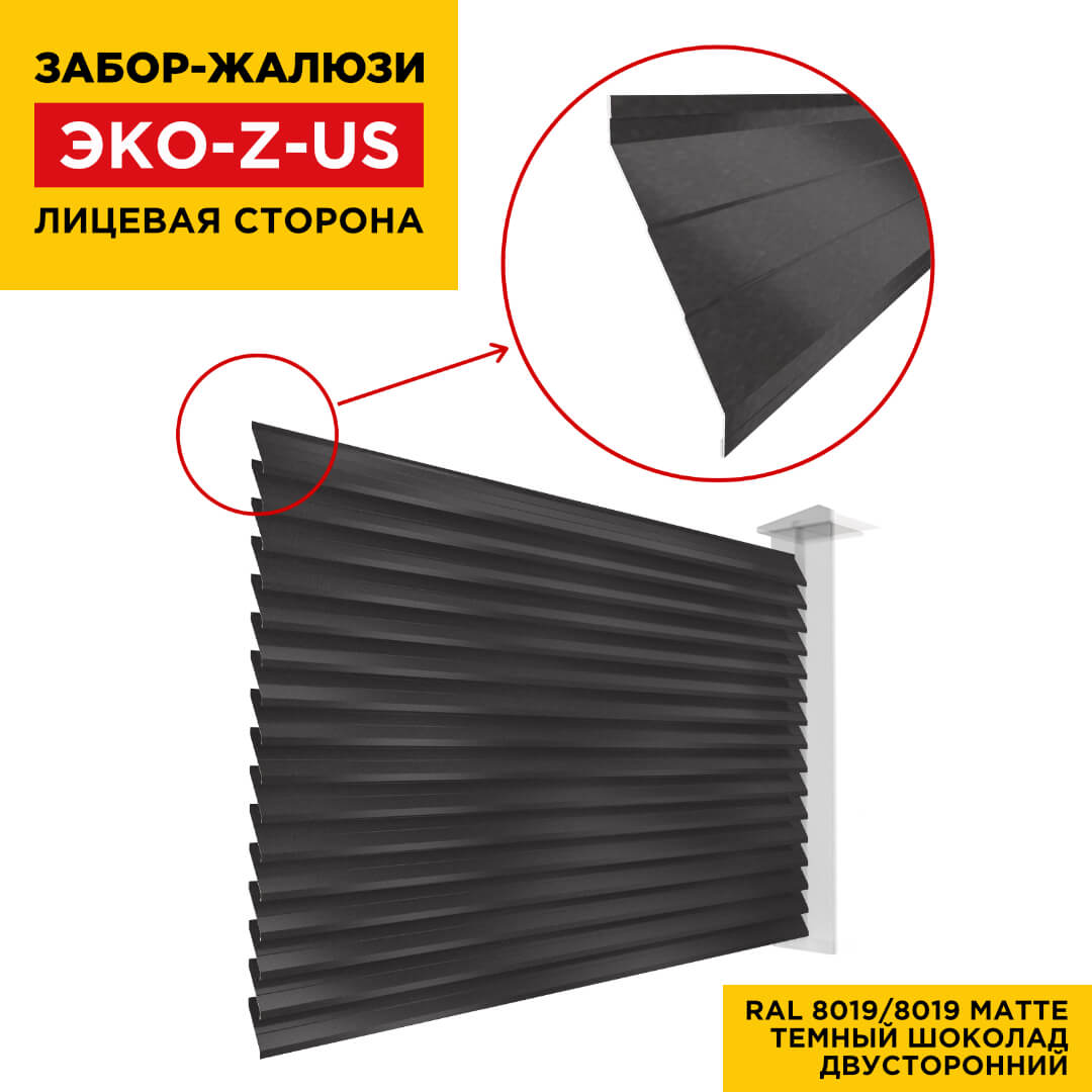 Ламель металлическая Z-образная усиленная ЭКО-Z-US, цвет RAL 8019/8019 МАТТЕ Темный Шоколад матовое двустороннее покрытие, длина любая кратно 1см под заказ - для забора-жалюзи, беседки, перголы в Рязани