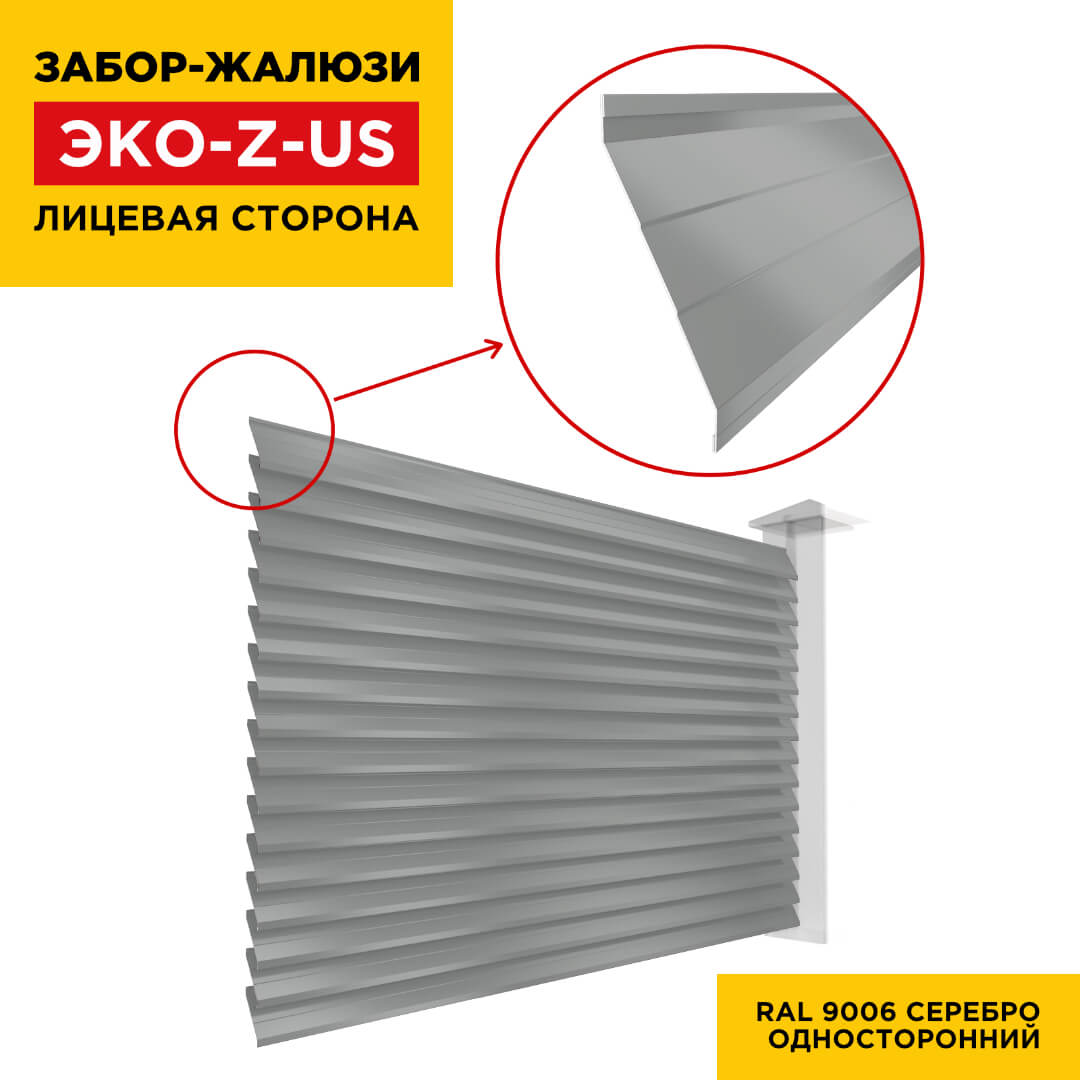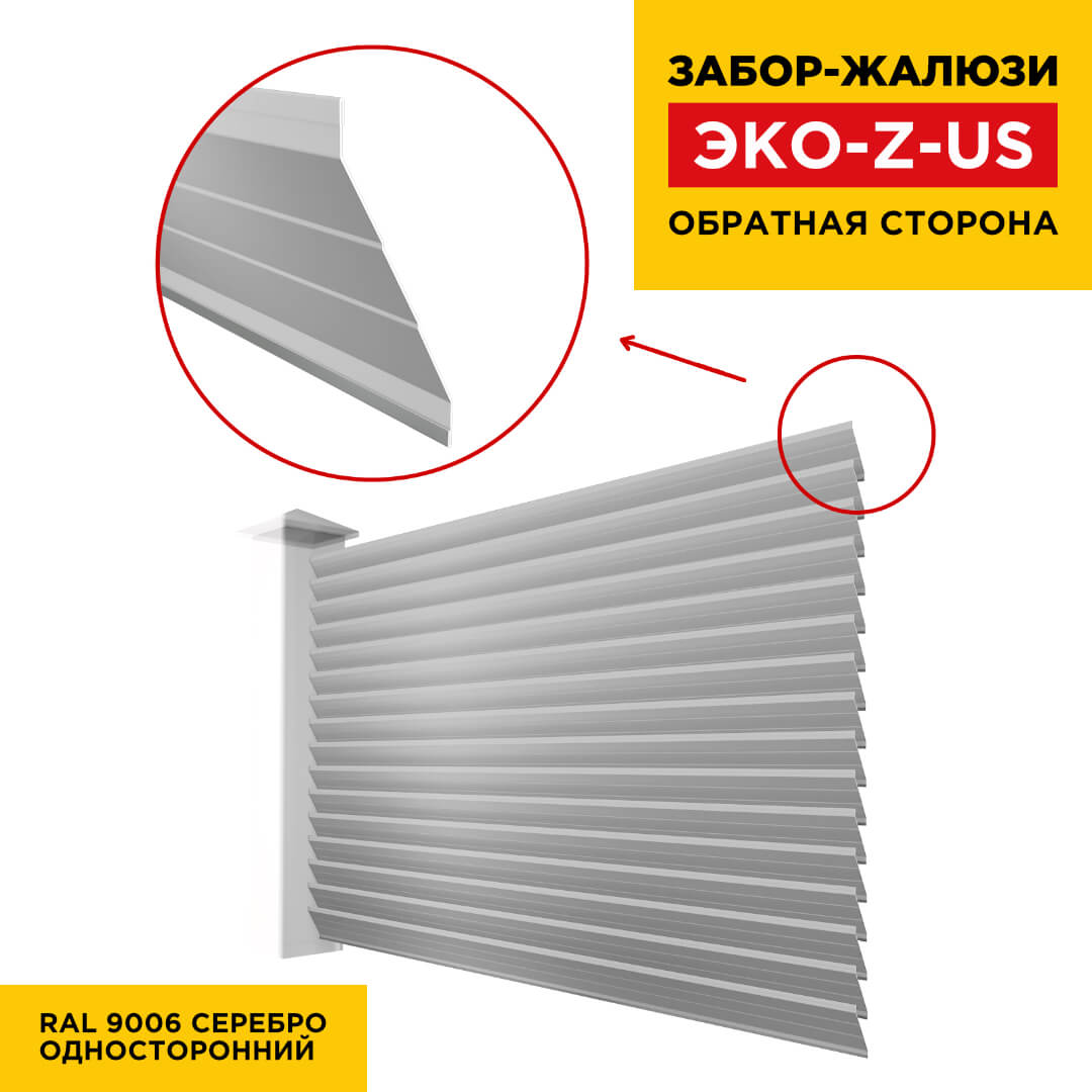 Ламель металлическая Z-образная усиленная ЭКО-Z-US, цвет RAL 9006 Серебро, длина любая кратно 1см под заказ - для забора-жалюзи, беседки, перголы в Рязани
