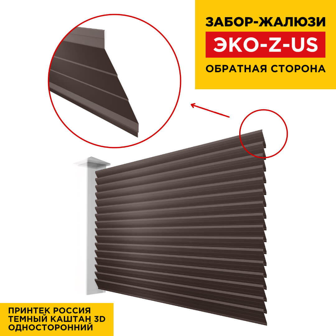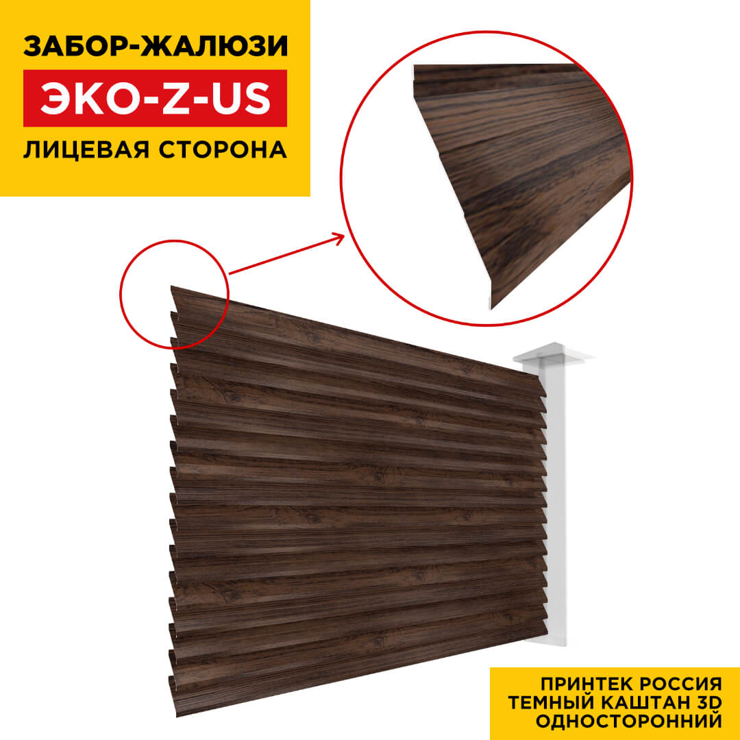 Ламель металлическая Z-образная усиленная ЭКО-Z-US, цвет под дерево Темный Каштан 3D Принтек Россия одностороннее покрытие, длина любая кратно 1см под заказ - для забора-жалюзи, беседки, перголы в Рязани