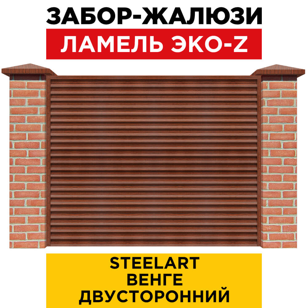 Ламель металлическая Z-образная простая ЭКО-Z, цвет под дерево Венге SteelArt двухстороннее покрытие, длина любая кратно 1см под заказ - для забора-жалюзи, беседки, перголы в Рязани