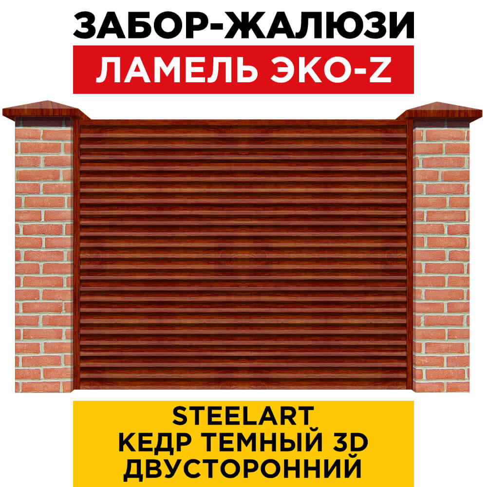 Ламель металлическая Z-образная простая ЭКО-Z, цвет под дерево Кедр Темный 3D SteelArt двухстороннее покрытие, длина любая кратно 1см под заказ - для забора-жалюзи, беседки, перголы в Рязани