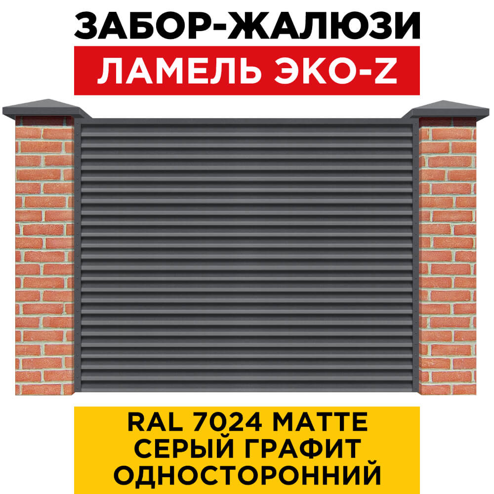 Ламель металлическая Z-образная простая ЭКО-Z, цвет RAL 7024 МАТТЕ Серый Графит матовое одностороннее покрытие, длина любая кратно 1см под заказ - для забора-жалюзи, беседки, перголы в Рязани