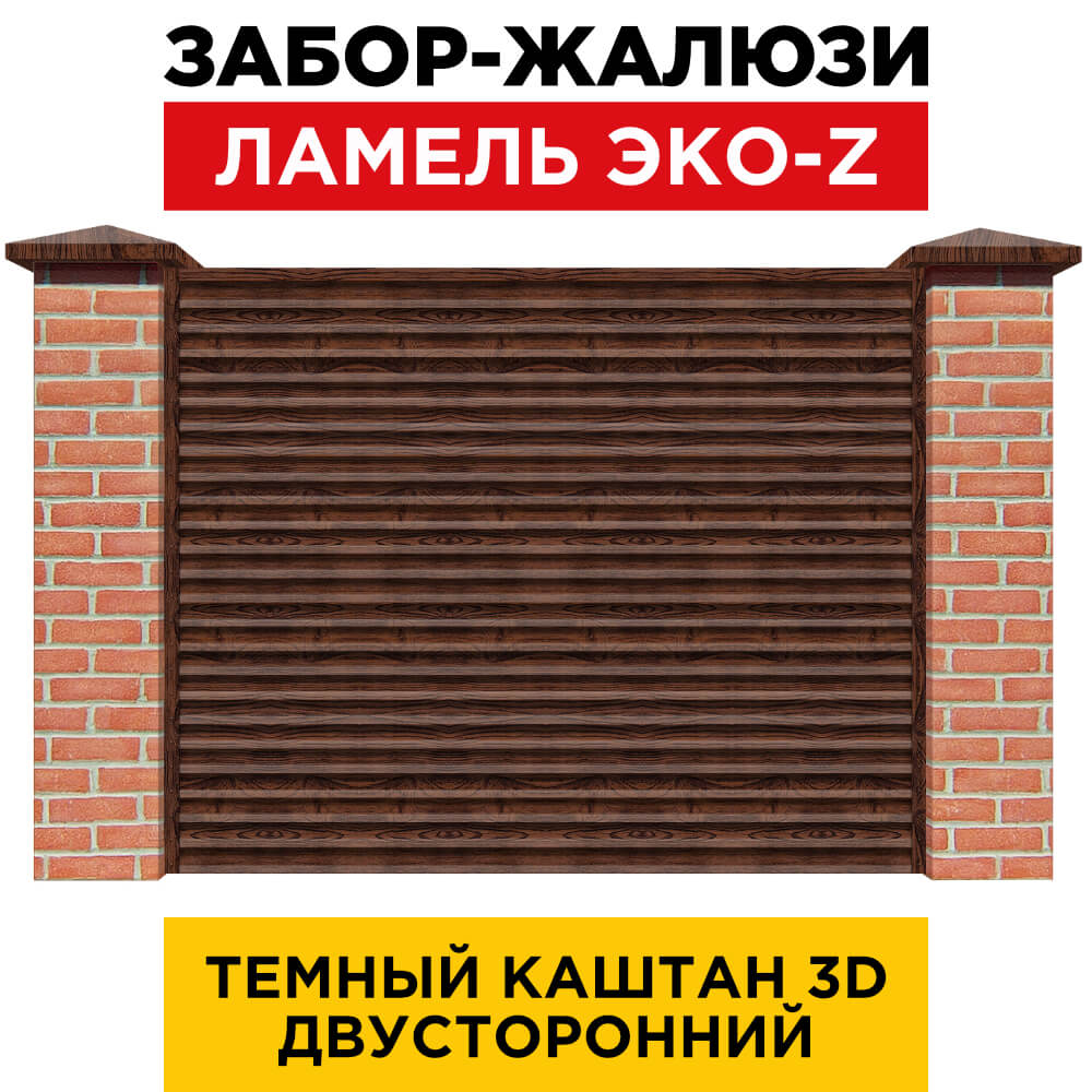 Ламель металлическая Z-образная простая ЭКО-Z, цвет под дерево Темный Каштан 3D Принтек двухстороннее покрытие, длина любая кратно 1см под заказ - для забора-жалюзи, беседки, перголы в Рязани.