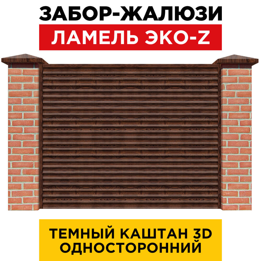 Ламель металлическая Z-образная простая ЭКО-Z, цвет под дерево Темный Каштан 3D Принтек одностороннее покрытие, длина любая кратно 1см под заказ - для забора-жалюзи, беседки, перголы в Рязани