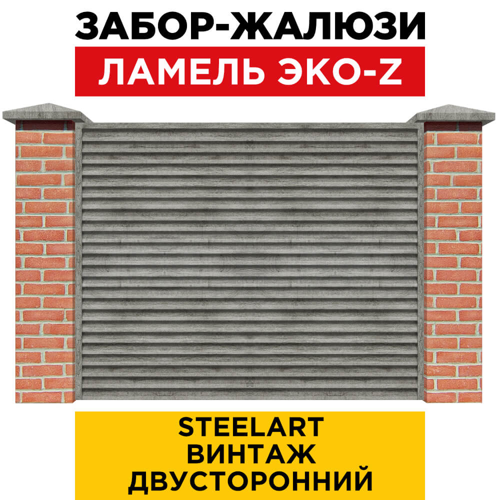 Ламель металлическая Z-образная простая ЭКО-Z, цвет под дерево Винтаж SteelArt двухстороннее покрытие, длина любая кратно 1см под заказ - для забора-жалюзи, беседки, перголы в Рязани