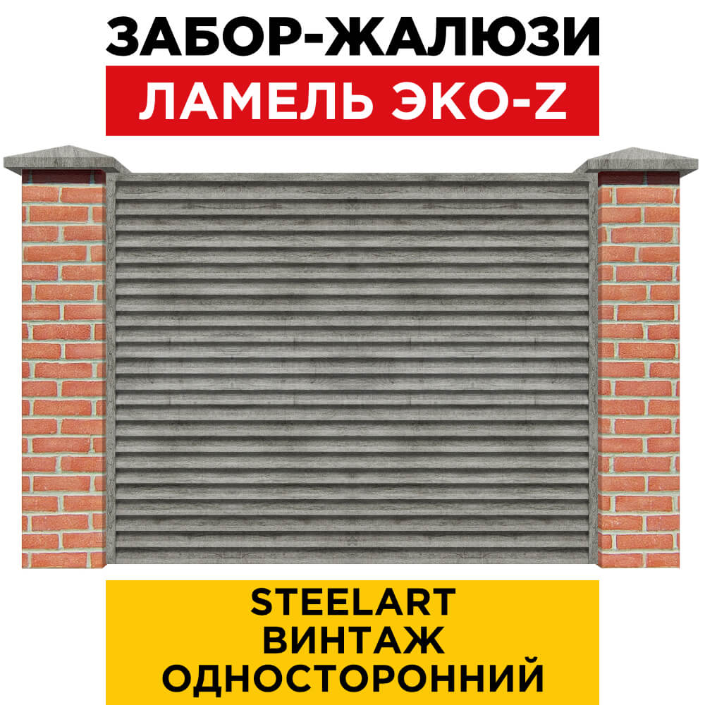Ламель металлическая Z-образная простая ЭКО-Z, цвет под дерево Винтаж SteelArt одностороннее покрытие, длина любая кратно 1см под заказ - для забора-жалюзи, беседки, перголы в Рязани