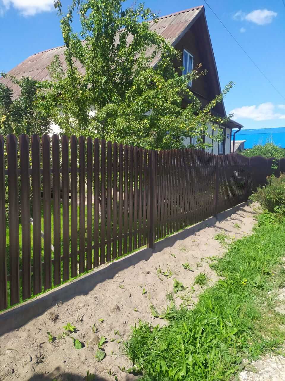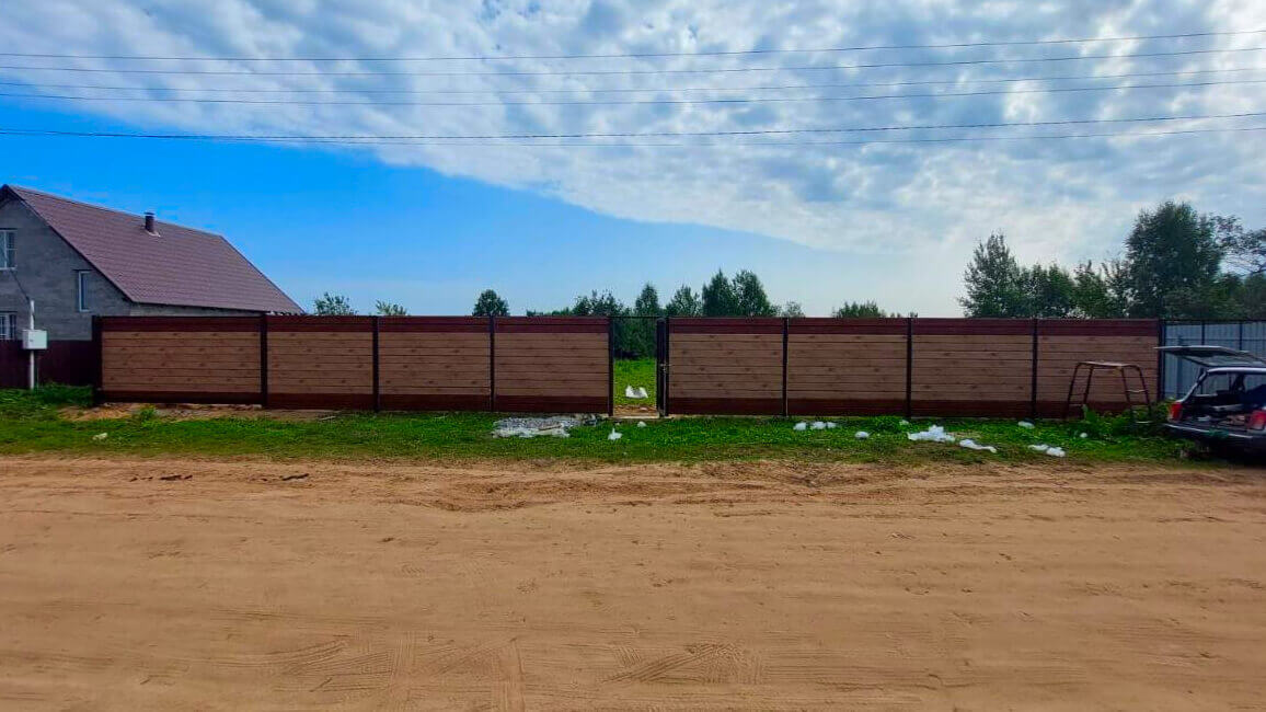 Фото-отчет забор из штакетника Эко-М цвет RAL 8017 коричневый шоколад