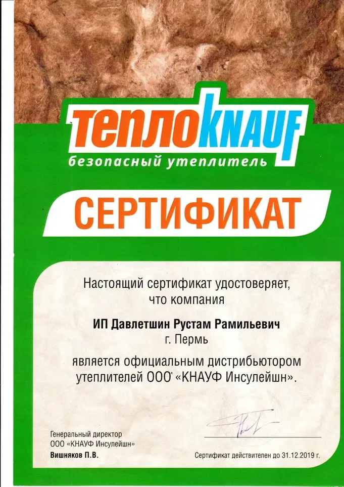Сертификат дистрибьютора KNAUF