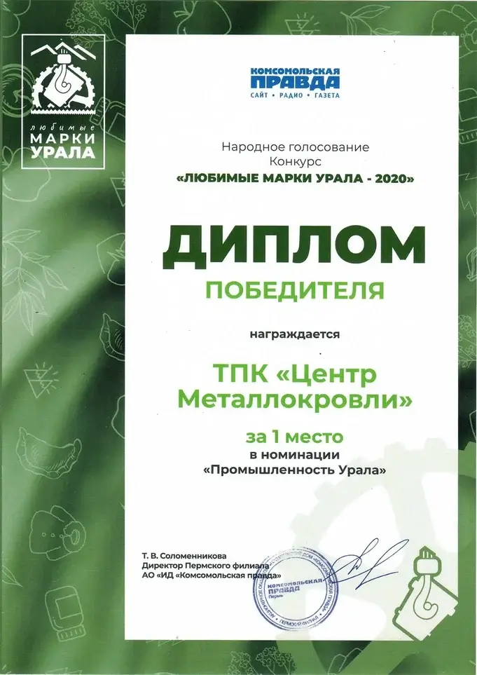 Диплом Любимые марки Урала 2020