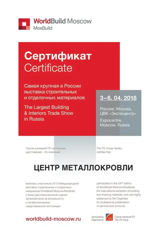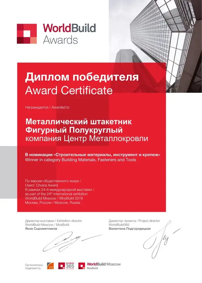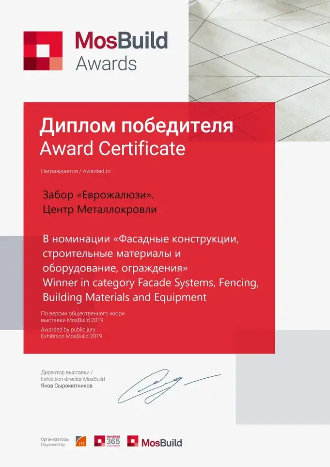Сертификат участника MosBuild Awards 2018