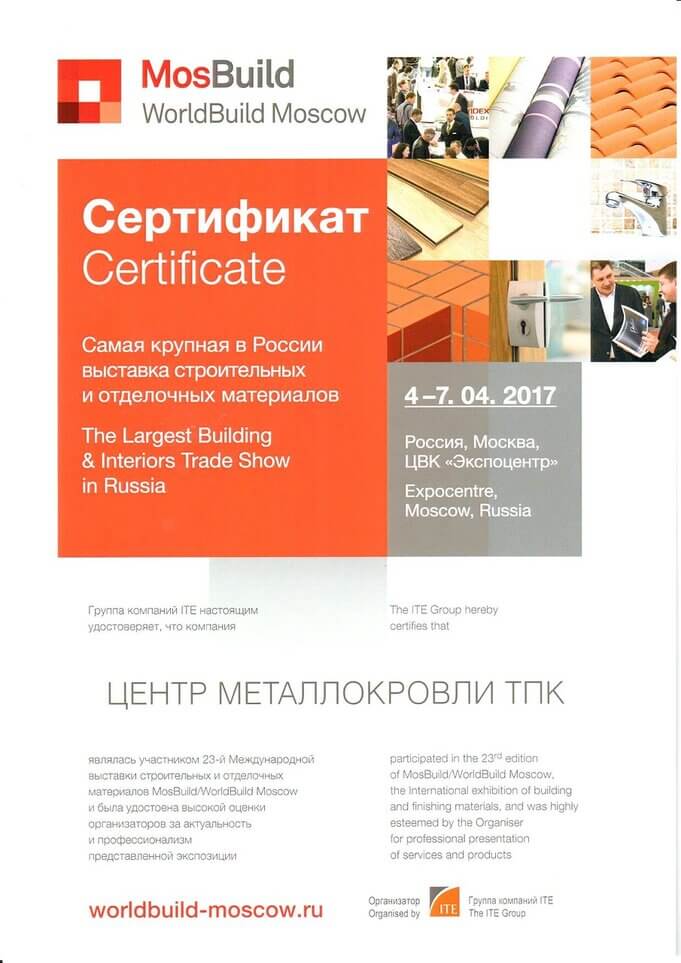 Сертификат участника MosBuild Awards 2017