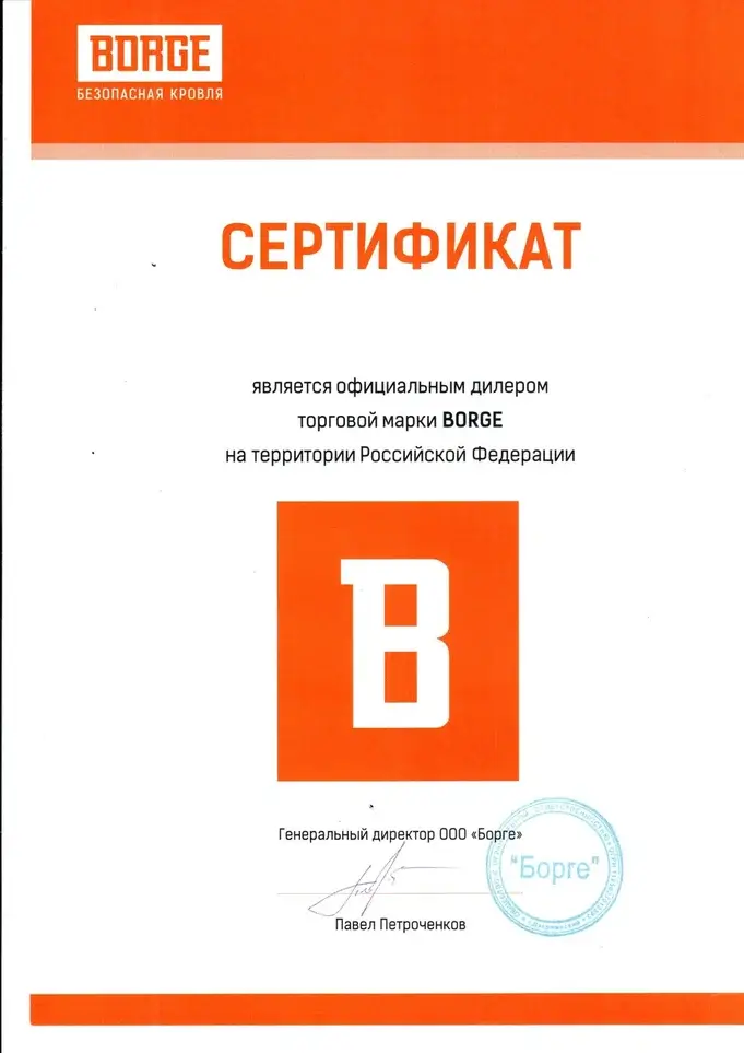 Сертификат дилера BORGE