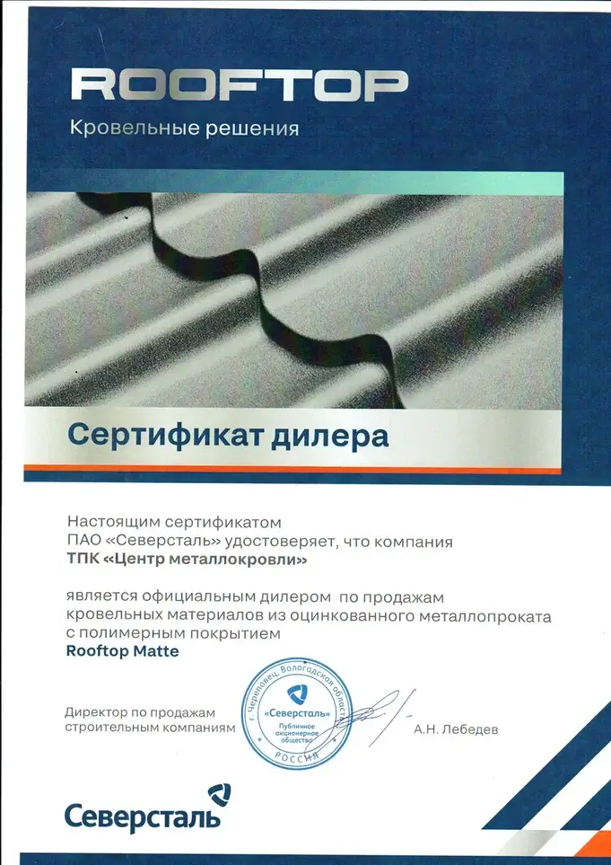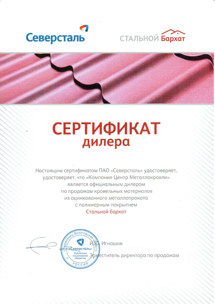 Сертификат дилера Северсталь