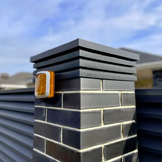 Колпак Bona Хай-Тек Серый на столбах, парапеты Monblan на заборе жалюзи Эко-Z, Колпак Monblan Серый на столбах забора жалюзи ЭКО-Z