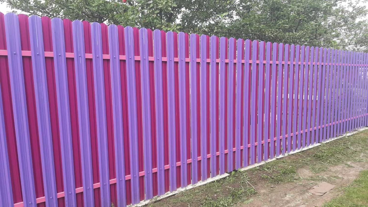 ✅ Вид секции: шахматка ✅ Профиль штакетника: ЭКО-М 95мм ✅ Цвет и покрытие: RAL4005 Сиреневый, RAL4006 Пурпурный полиэстер