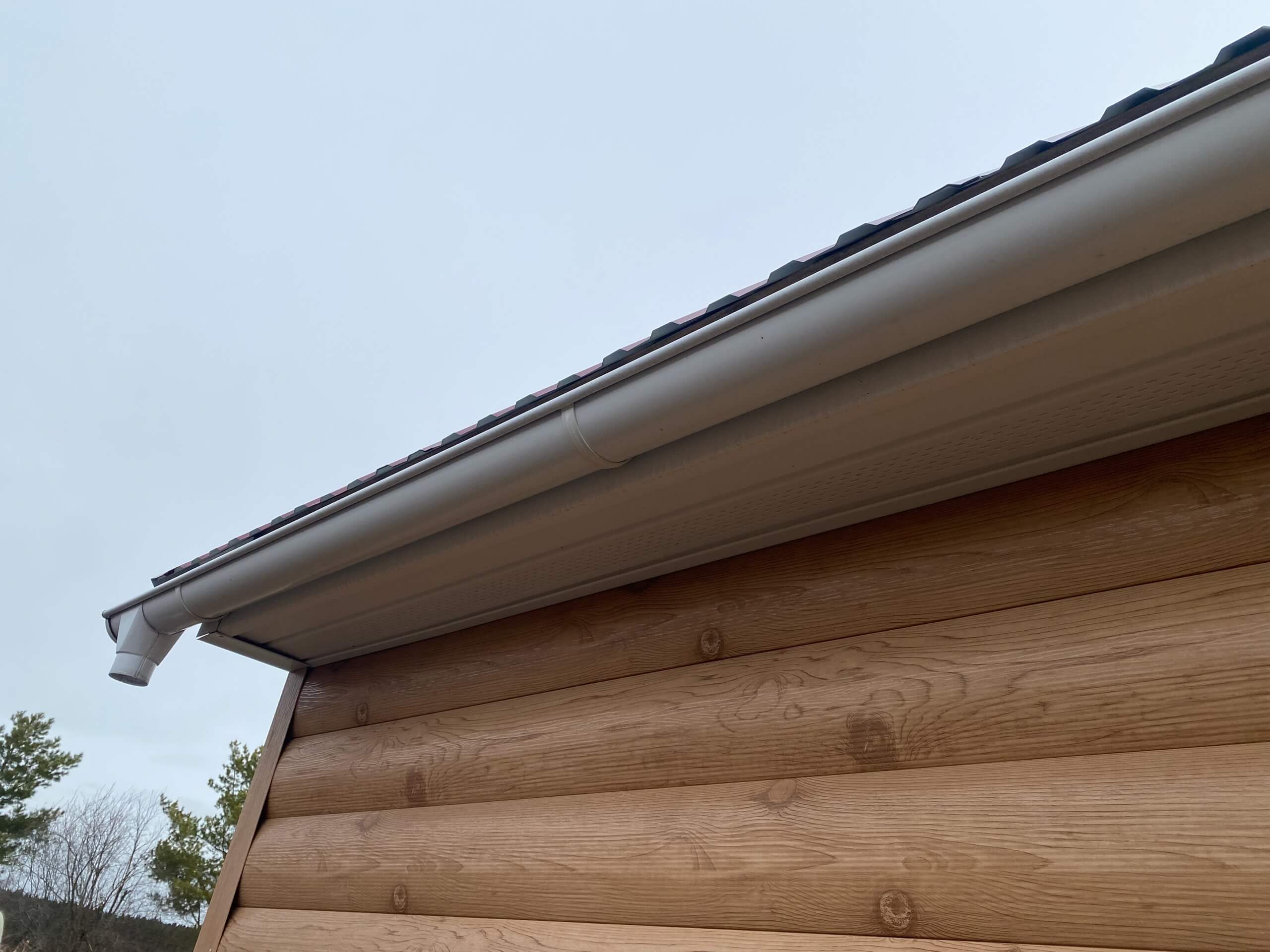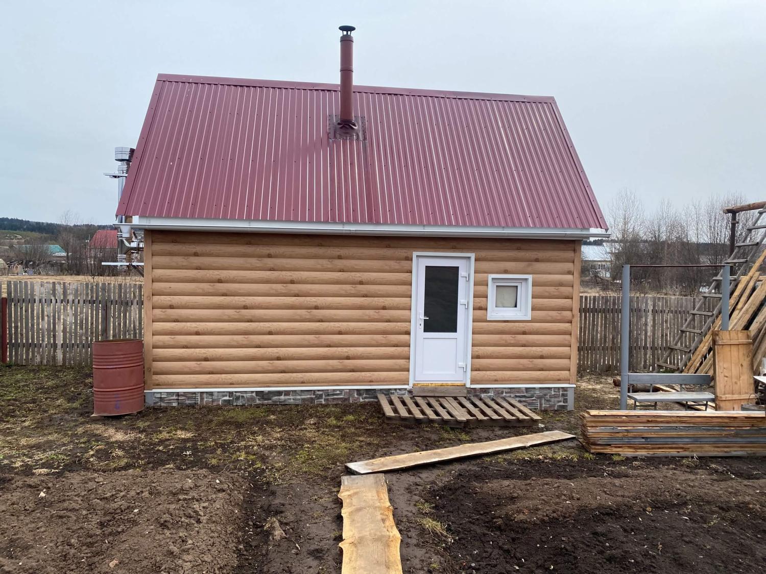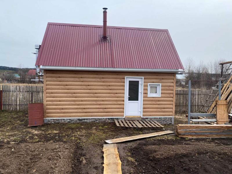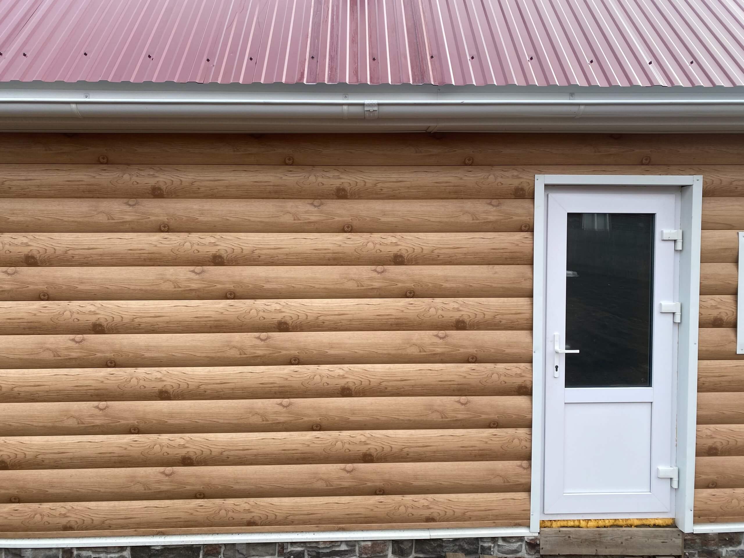 Отделка фасада бани металлическим сайдингом Блок-Хаус