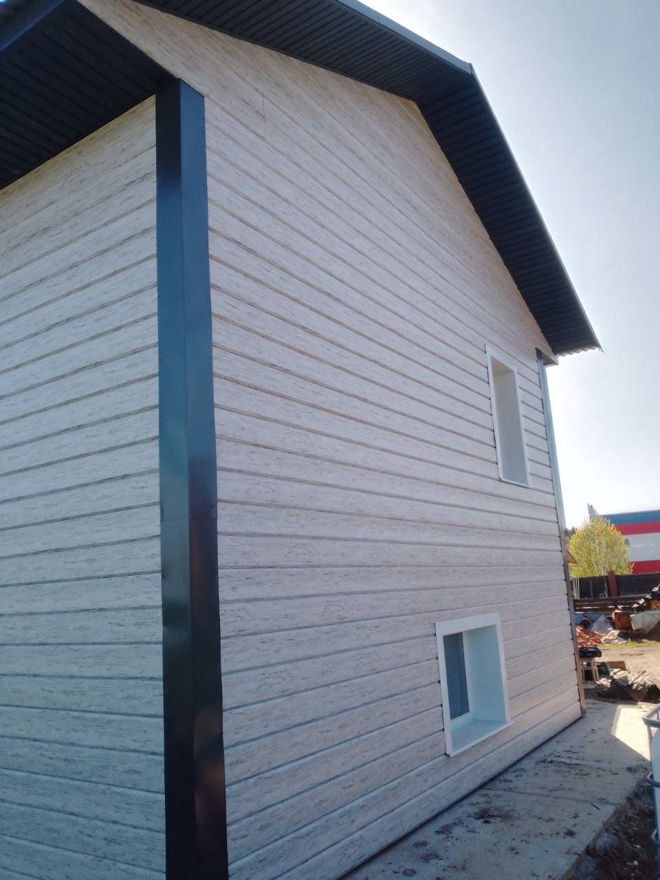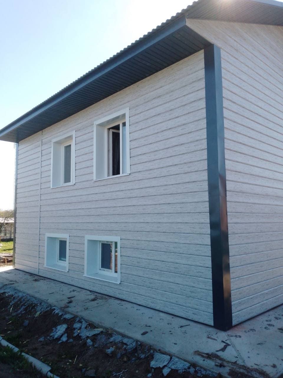 Отделка фасада дома металлическим сайдингом ЕВРО-БРУС Установка ламелей Еврожалюзи на слуховое окно