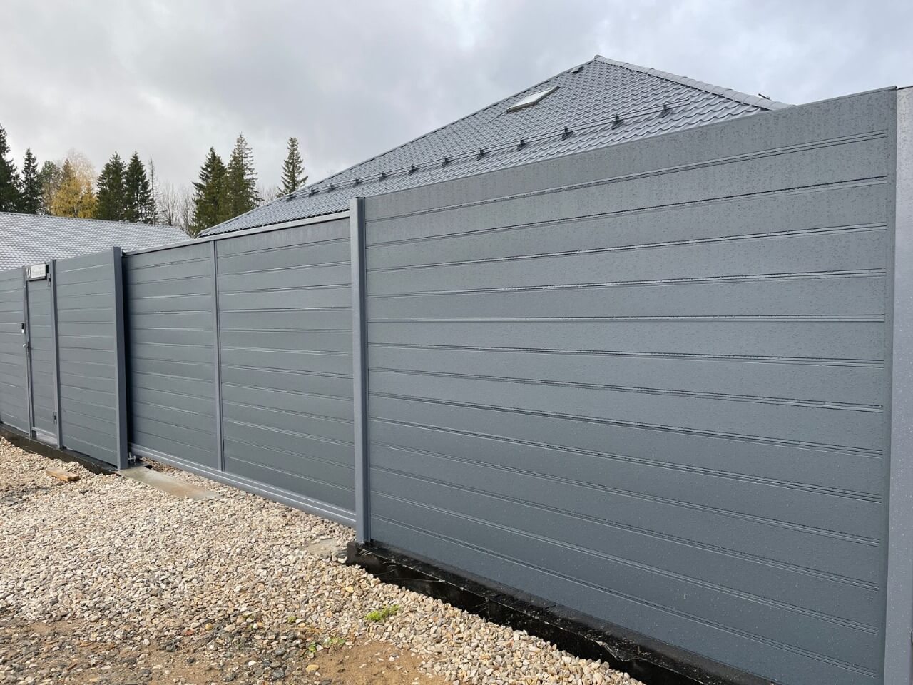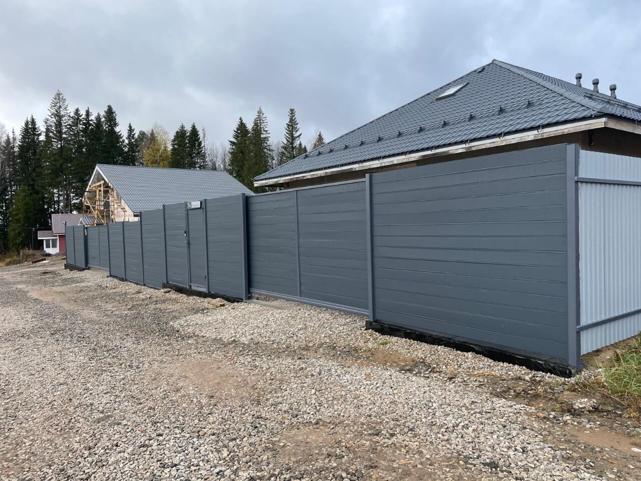 забор из металлопланкена с входной группой